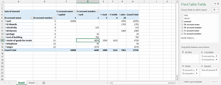 All we do now is to generate a Pivot Table from the transactions, as follows: