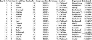 The CompPerfChart utility enables you to enter the payroll number for any employee and analyse their competence in terms of any tests you may have carried out on them. Your chosen employee's scores are then automatically mapped on a chart against your organisation's average data. On the same WorkSheet, there is an organisation wide analysis of all competence and performance scores in the form of a histogram.